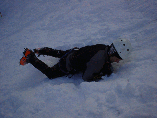 pohybu v mačkách a s cepínem na rovině a ve svahu, brzdění ve svahu, lezení TR